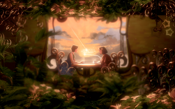 Each section of the game is a visualization of a conversation between characters, starting at their location in the physical world, but seamlessly moving to metaphorical dream worlds that parallel the essence and emotions of their conversation.